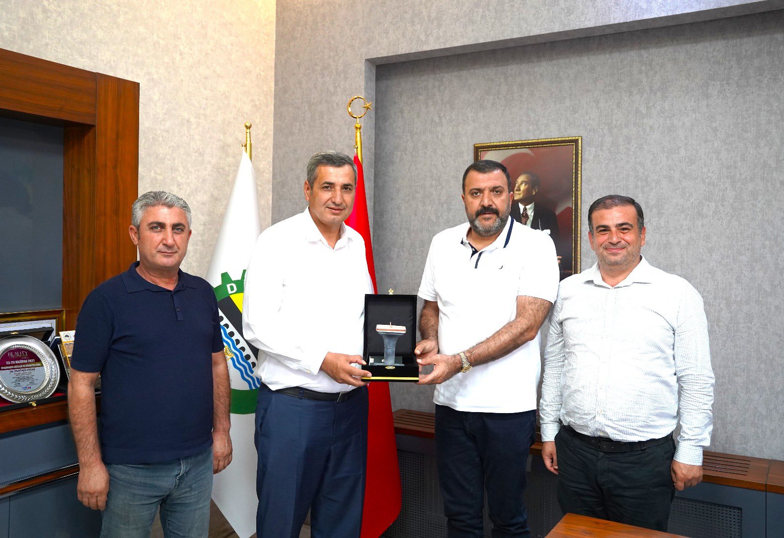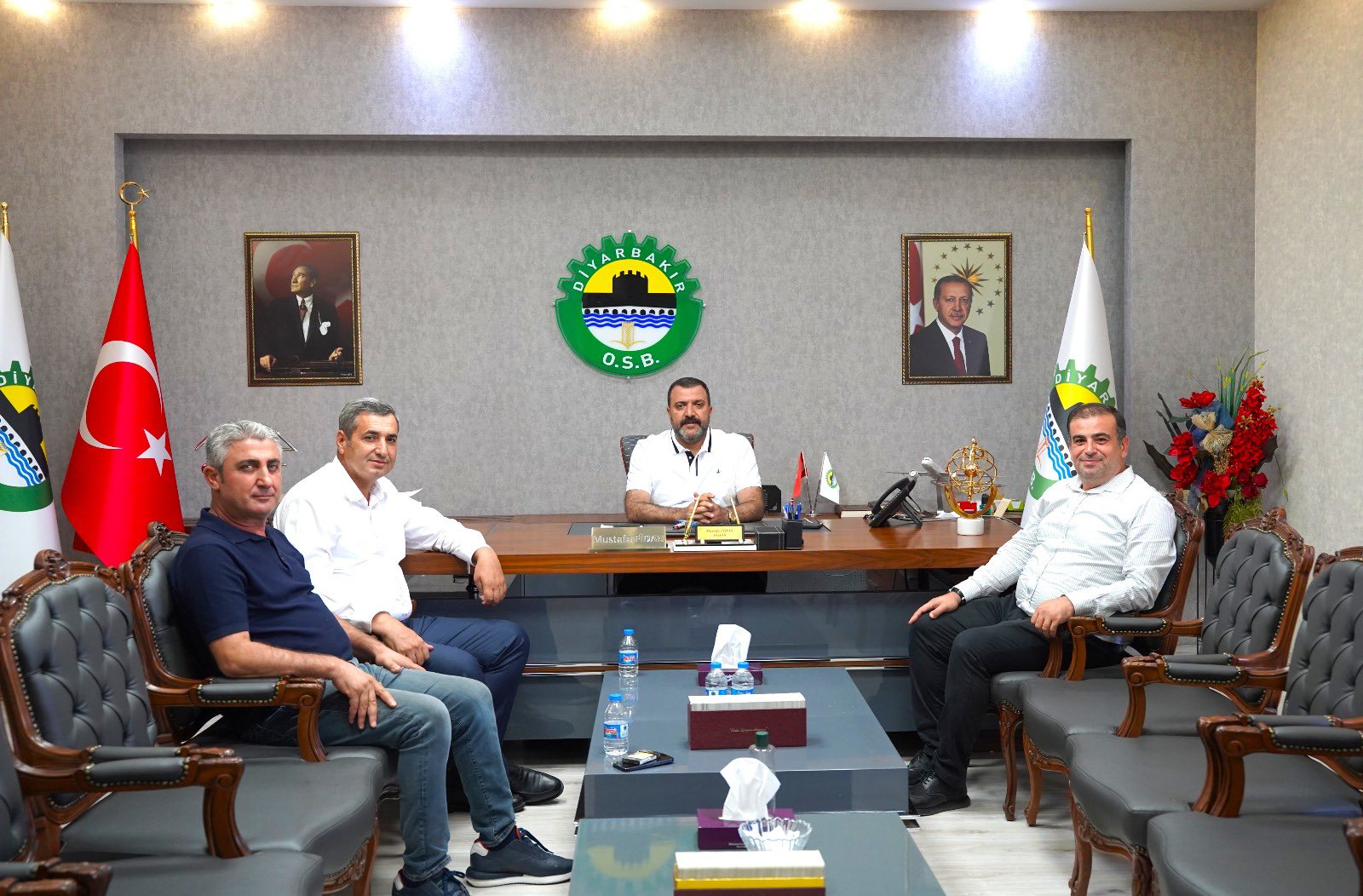 Diyarbakır Gümrük İl Müdürü Mustafa Karacaoğlu veda ziyareti kapsamında Organize Sanayi Bölgesi Yönetim Kurulu Başkanımız Mustafa Fidan ve Yönetim Kurulu Üyemiz Kamuran Azizoğlu'nu ziyaret etti. 12 Ağustos 2025, 16:16