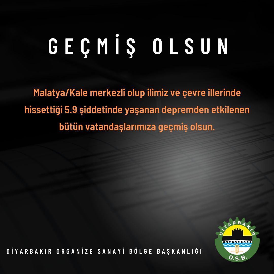 Malatya / Kale merkezli olup ilimiz ve çevre illerin de hissettiği 5.9 şiddetinde yaşanan depremden etkilenen bütün vatandaşlarımıza geçmiş olsun.